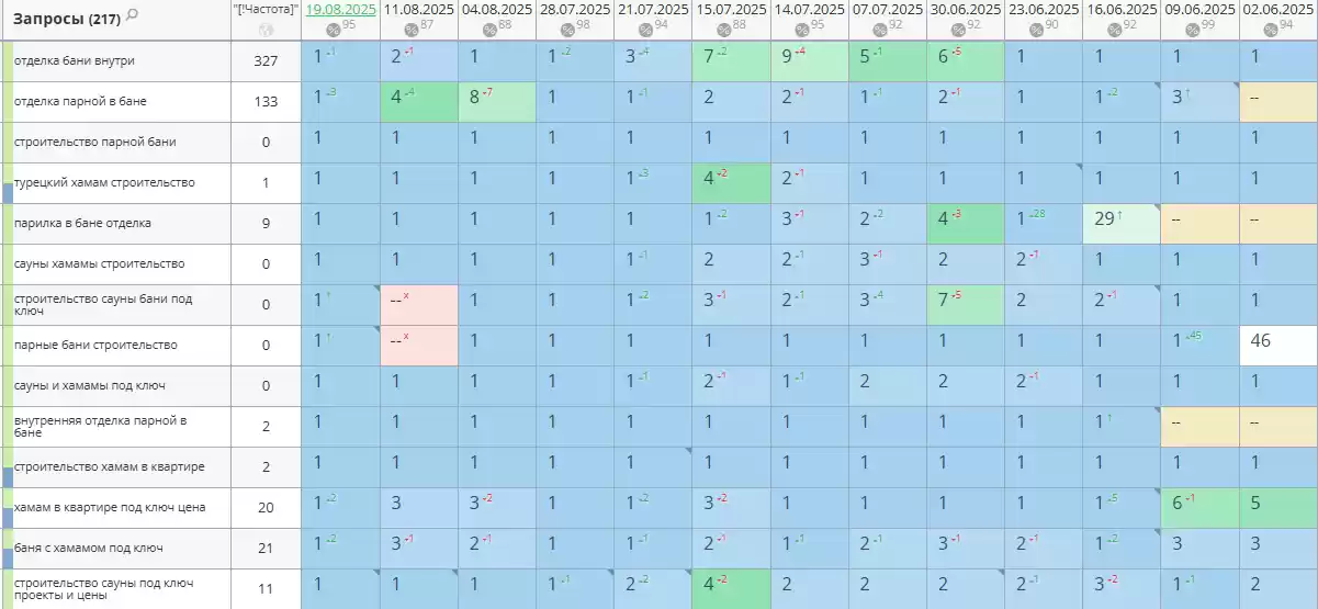 - Позиции по запросам